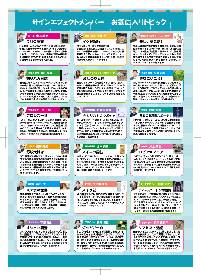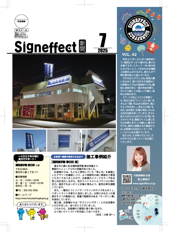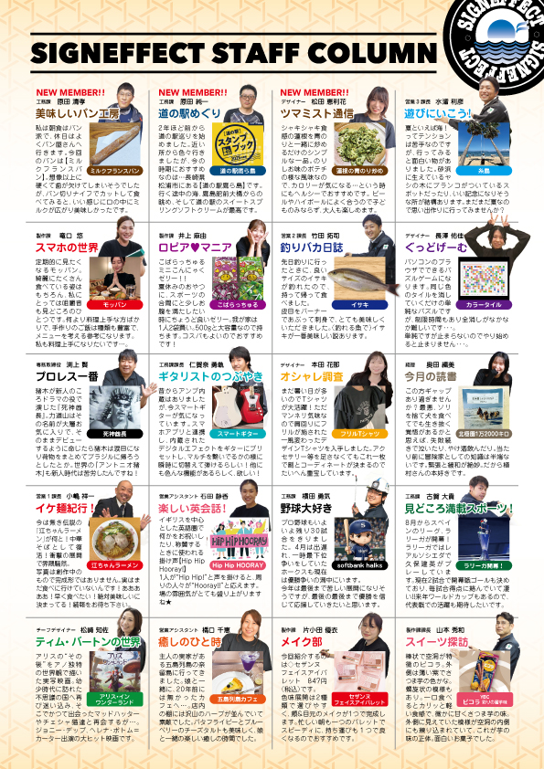 表面に看板事例のご紹介、裏面はスタッフプチコラム。