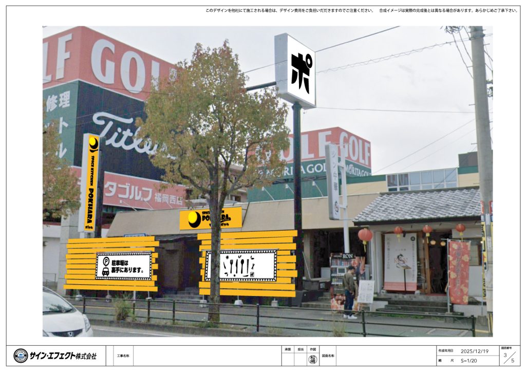 ポール看板にはポカラの「ポ」の一文字を入れてインパクト強めなデザインに。