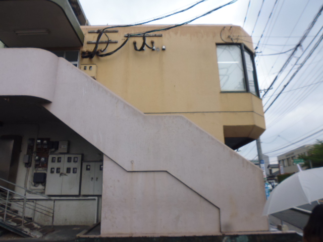 入口に向かう階段上部壁面にFF電照看板を取付けました。大通りに面しているので、視認性も良いです。